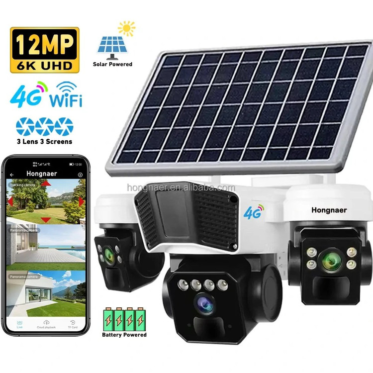 دوربین سه لنز خورشیدی قابل تنظیم 16 مگاپیکسل یک دوربین مداربسته پیشرفته است برای کاربرانی که میخواهند همزمان چند نقطه مخالف را تحت پوشش قرار دهند به طور مثال نصب در کوچه ، خیابان و یا مسیر هایی که از هر جهت تردد برای ما مهم است.
