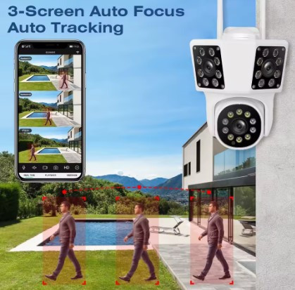 دوربین سه لنز سیمکارتی 12MP 6K Auto Focus V380 PROمجهز به فناوری تشخیص حرکت است و میتواند در صورت شناسایی حرکت مشکوک، هشدارها را به گوشی یا سیستم مرکزی ارسال کند.